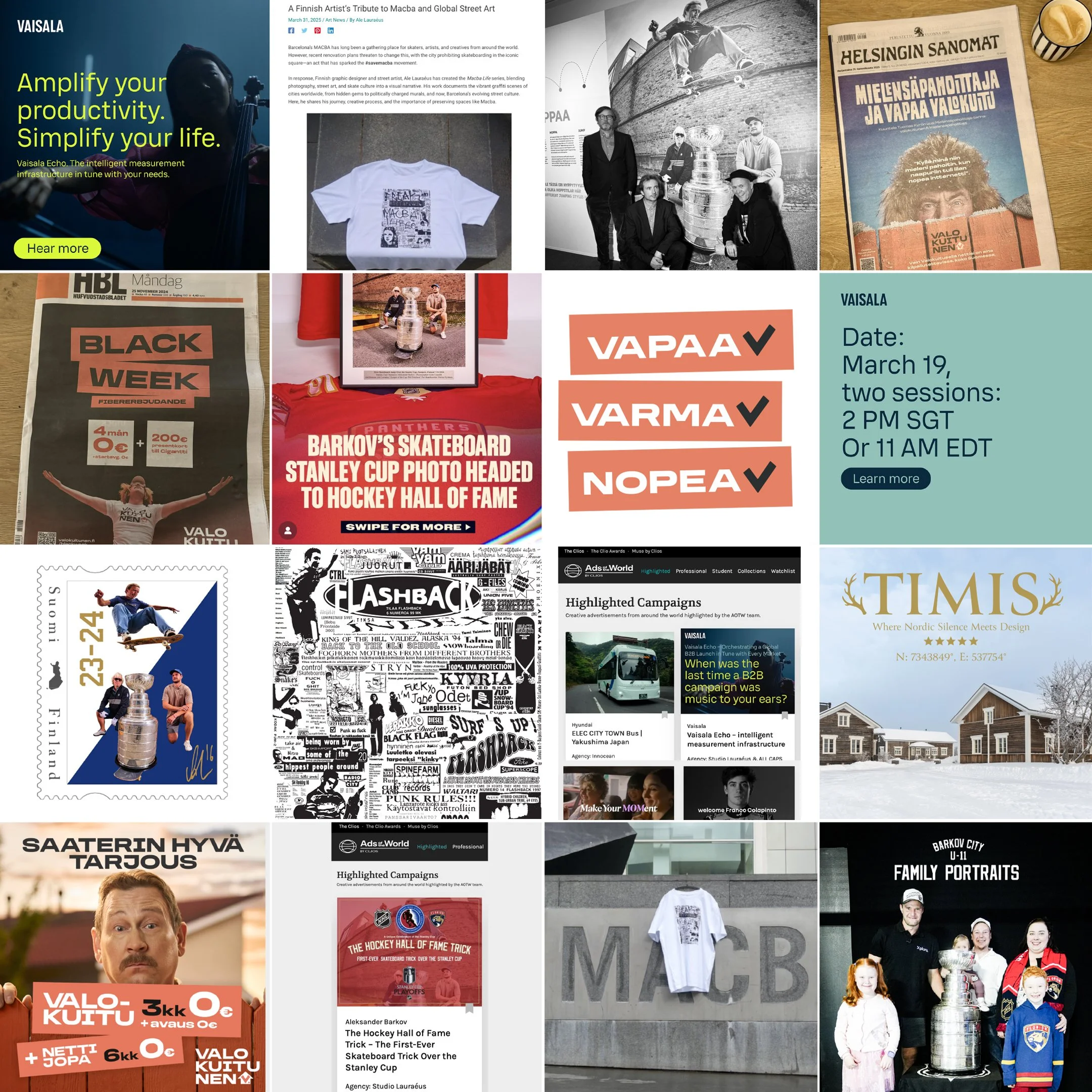 Studio Lauraéus Oy on luova suunnittelutoimisto, jossa yhdistyvät vahva visuaalinen osaaminen, tarinankerronta ja kaupunkikulttuurin rohkea energia. Työmme elää yhtä luontevasti brändi-ilmeissä, kampanjoissa ja julkaisuissa kuin julkisissa tiloissa ja taideprojekteissa.