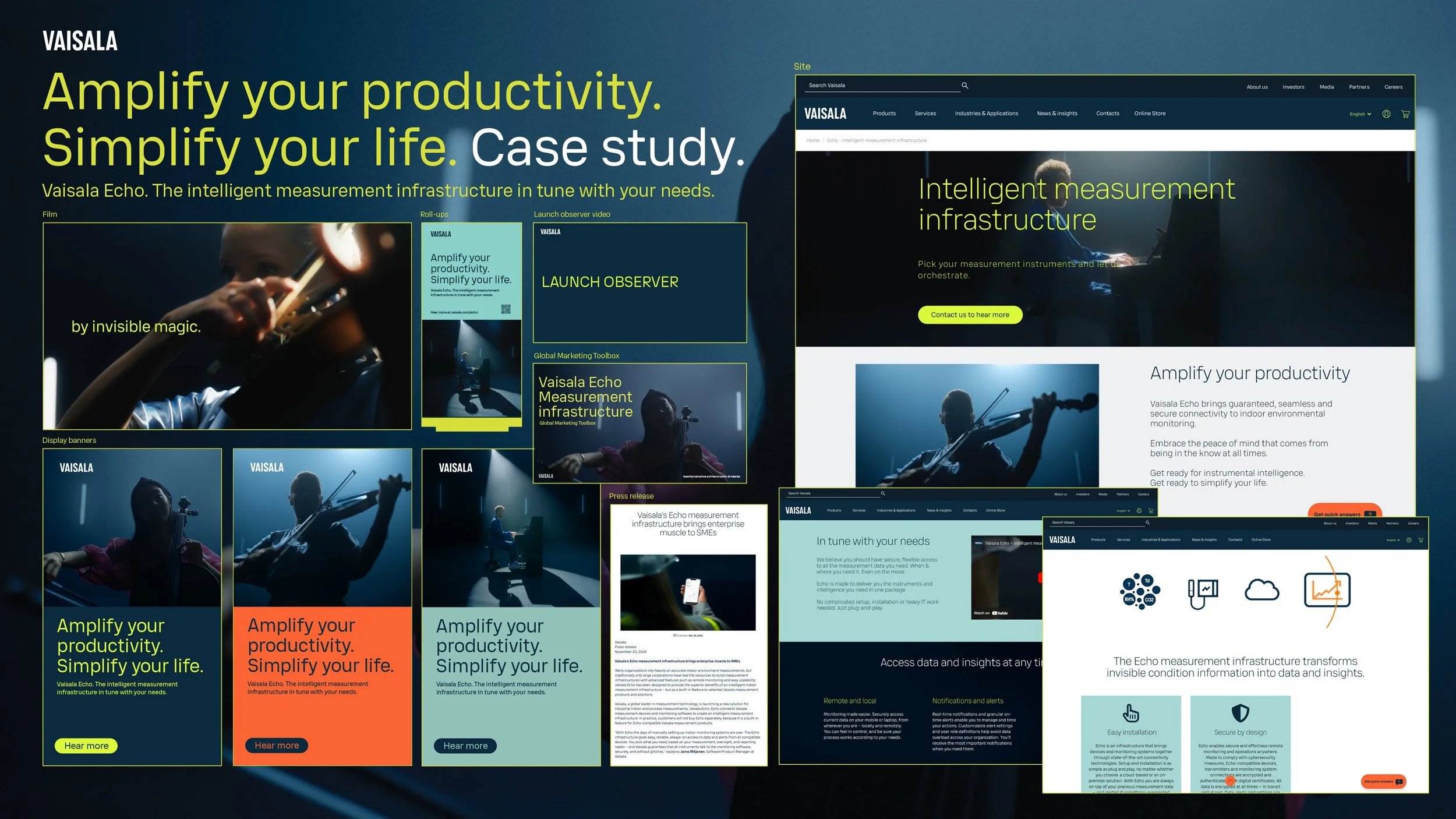 Vaisala Echo is made to amplify your productivity. It brings you guaranteed, seamless and secure connectivity for indoor environmental monitoring. Vaisala Echo is in tune with your needs. It offers secure, flexible access to all the measurement data and insights you need. When & where you need them. Even on the move. Vaisala Echo is made to deliver you the instruments and intelligence you need in one package. No complicated setup, installations or heavy IT work needed. Just pick your measurement instruments and let us orchestrate. Vaisala Echo. Amplify your productivity, simplify your life.