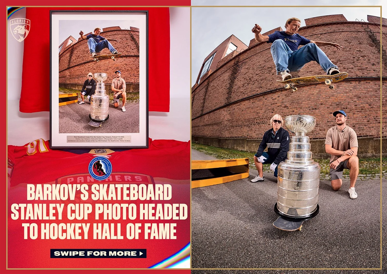 Aleksander Barkov’s Stanley Cup celebration in Tampere, Finland, was a historic moment where two cultures met in an unprecedented way, surprising the audience completely. Professional skateboarder Marius Syvänen performed the world’s first skateboard trick over the Stanley Cup, which quickly went viral and spread globally through NHL, Florida Panthers, ESPN, The Hockey News, and top skateboarding media.